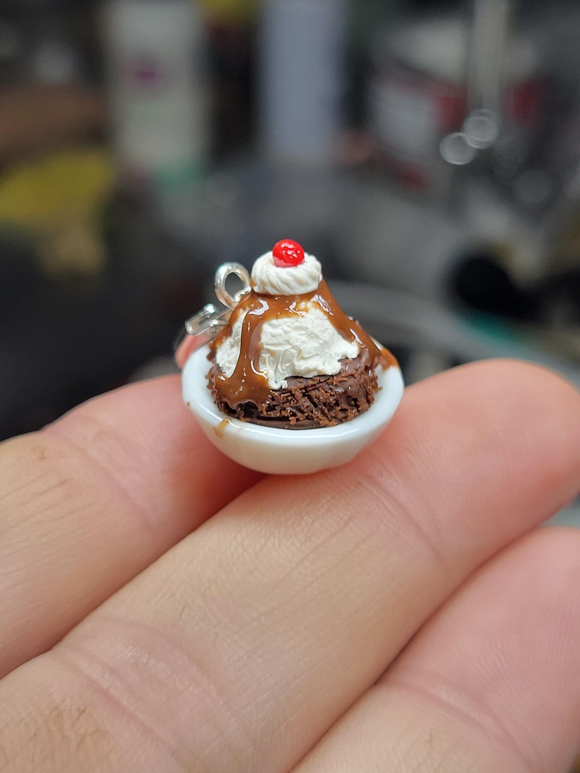 I SCREAM - YOU SCREAM - WE ALL SCREAM Brownie HOT FUDGE sundae earrings The attention to detail in these tiny creations is very apparent. Down to the glistening fudge topping. Each sundae is hand made is is approx the size of the tip of your finger! *Sterling silver huggie style earring Each is topped with a bit of whipped cream and a cherry for added flair All made by hand so no 2 will be alike! want a different ice cream flavor? OK add a note to your order at checkout!!!